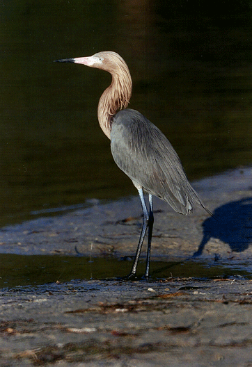 The Reddish Egret has two color morphs, either dark or white. They maintain their color for life, staring with the downy stage in the nest. Mated pairs may be of the same or different color morphs and their broods may include either or both morphs.