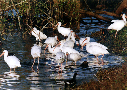 The White Ibis is one of the most numerous birds in Florida. I have seen this bird not only in wild areas, as it forages for mostly crustaceans and small fish, frogs and snails by sweeping and probing finding its food by touch, but many parks and lawns probing for insects.